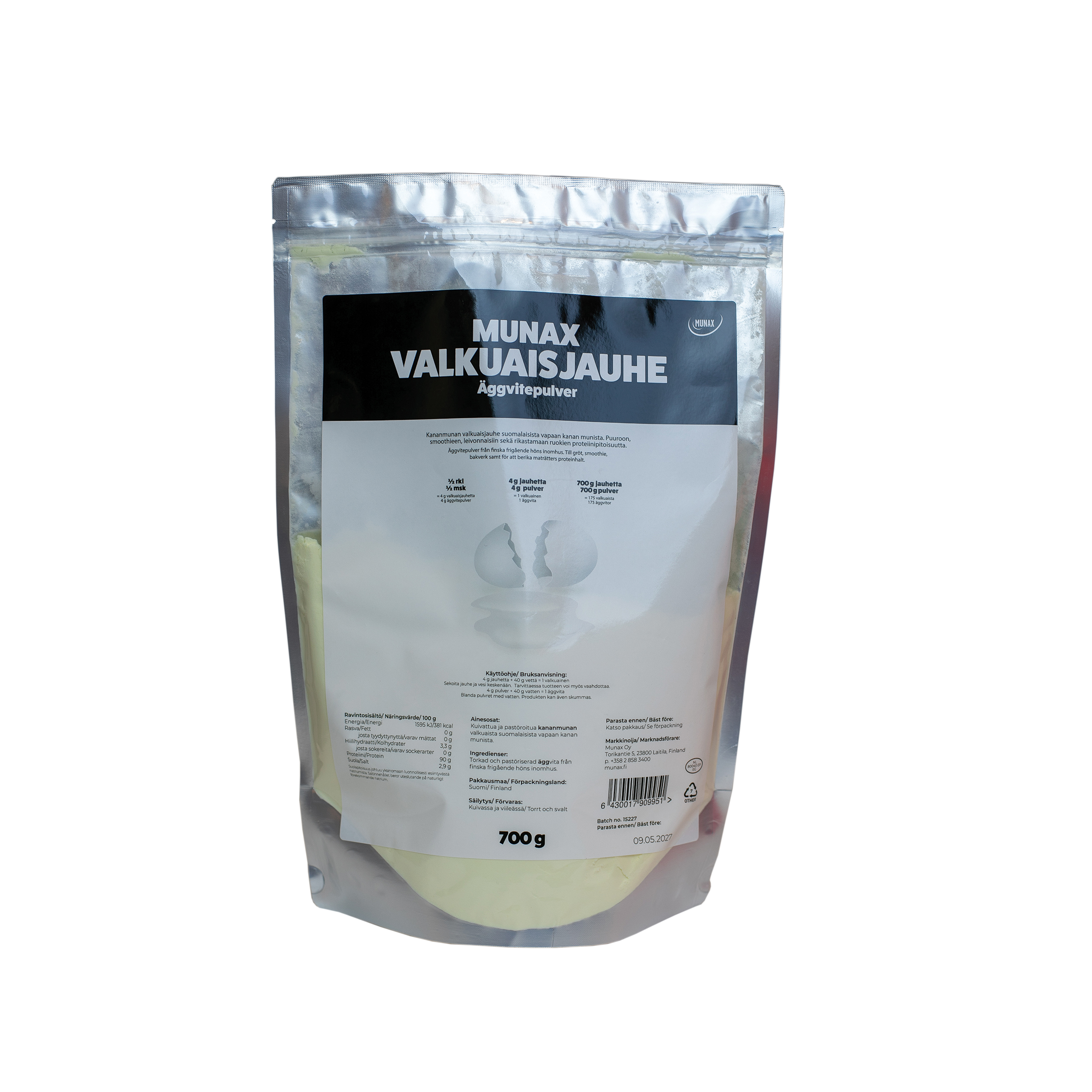 Munax Valkuaisjauhe on täydellinen proteiinijauhe sinulle, jolle korkealaatuinen proteiini ihanteellisella aminohappokoostumuksella on tärkeintä! Kananmunan valkuainen on erinomainen proteiininlähde kovan treenin ja hyvän ruokavalion tueksi. Kananmunien sisältämän proteiinin laatu ja imeytyvyys on huippuluokkaa. Valkuainen ei sisällä ollenkaan rasvaa, minkä vuoksi se on mm. monien laihduttajien ja urheilijoiden suosiossa.